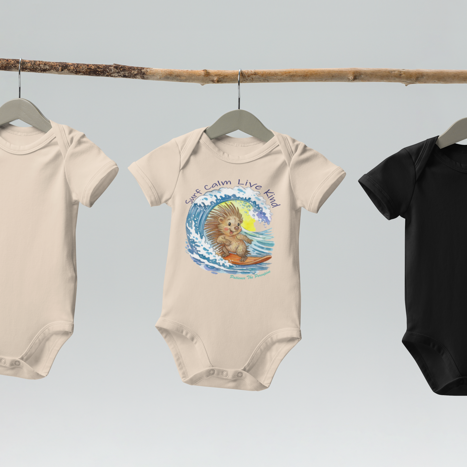 Wrap your little one in comfort and kindness. This organic cotton bodysuit is made from 100% certified Organic Cotton fabric that’s safe and gentle on sensitive skin. Featuring the simple Patience the Porcupine logo, it’s a sweet reminder of calm and connection. With easy snaps for quick changes, this eco-friendly essential is designed for everyday snuggles, play, and rest.